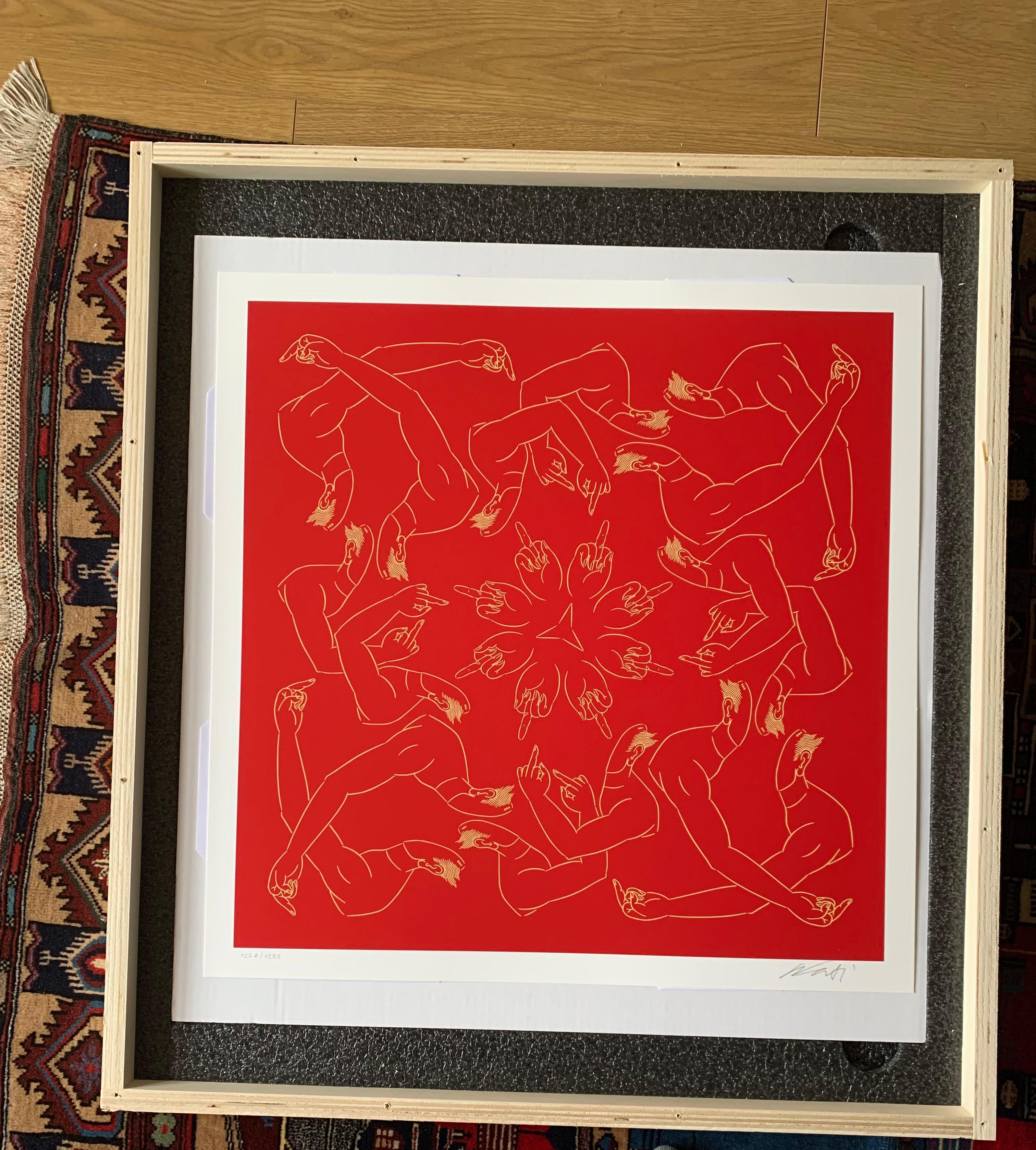 The radial composition – created specially for the edition and printed in two layers – references the raised middle finger which defines Ai’s seminal series, Study of Perspective.